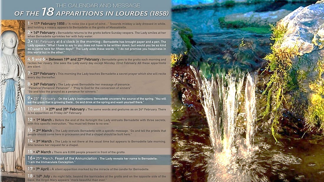 Soubirous’s companions are said to have become afraid when they saw her in ecstasy. She remained ecstatic even as they returned to the village. On 18 February, she spoke of being told by the Lady to return to the Grotto over a period of two weeks. She quoted the apparition: