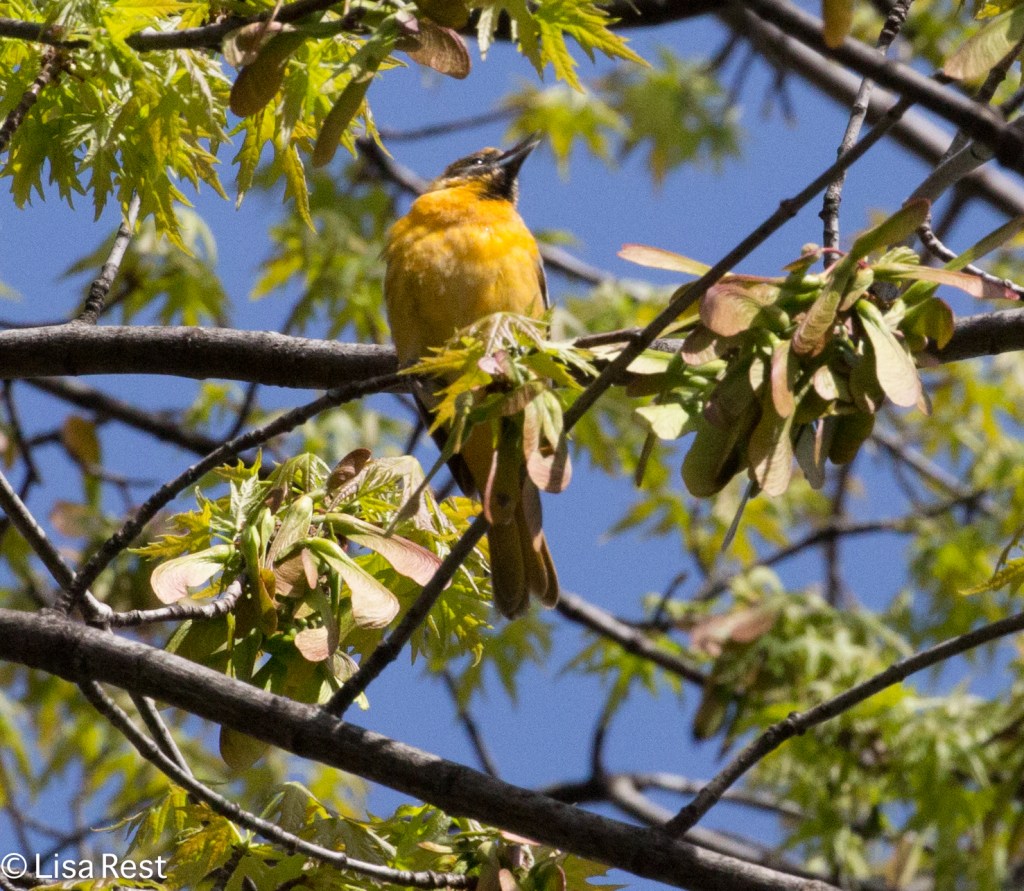 I can almost count on seeing male Baltimore Orioles but the females are less visible, so it was nice to capture this one.