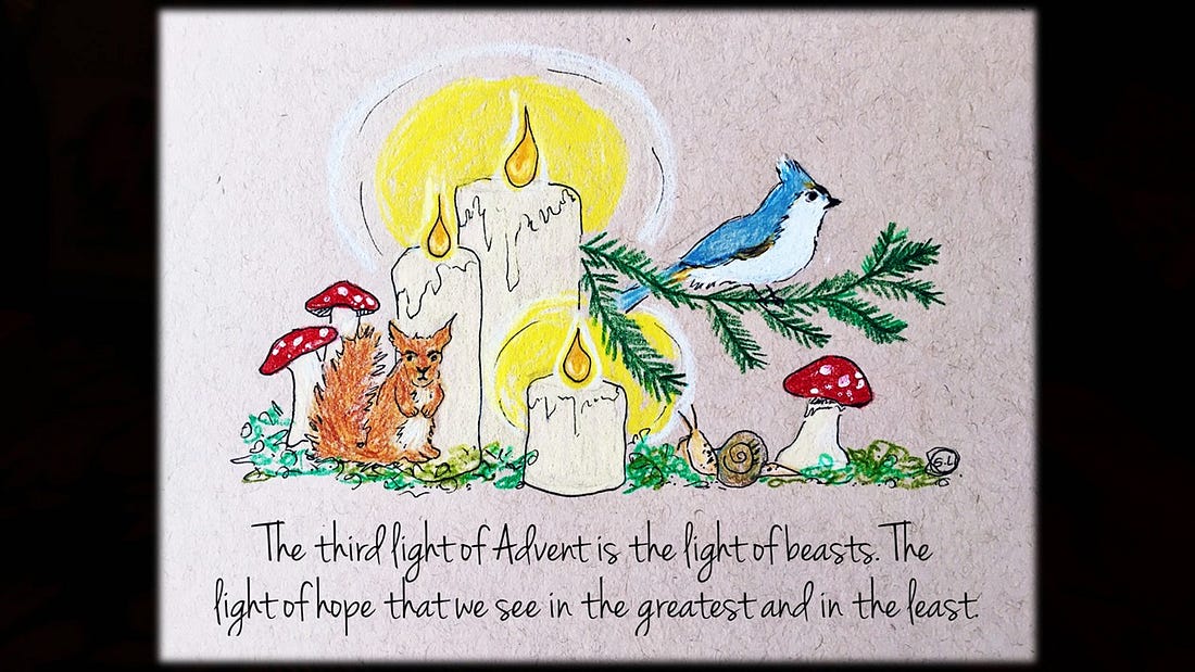While waiting for the birth of the light, we move deeper into the dark, & the Holy Daze of December revs up – The 12th gives us the Feast of Our Lady of Guadalupe - & On the eve of the 3rd Sunday of Advent we meet the Feast of Santa Lucia - & tonight at Sunset, the 8 days of Hannukah begin – reminding us of the miracle & triumph of light. There is an interesting parallel to Lucia - the martyr blinded for the light - in that according to Astrosophy, which takes into account what was inscribed in the heavens during the life of Christ on earth, Lucia’s Feast Day corresponds to the alignment that occurred during the healing of the man born blind, described in the Gospel of John. This parable shows that our eyes were created by the light for the light. The Sun, whose light is now waning, gives us an opportunity to inwardly perceive the Spiritual light behind the physical semblance – an eternal flame that we must set ablaze thru our thinking will - & this requires a sacrifice - We must be willing to shift our gaze - to a gain a new focus - beyond the lower astral. As we have been experiencing in the First & Second weeks, if we are awake in the dark, Advent is a time when the human being faces many trials. Only when we stand up to these tests can we enter the Temple of Wisdom - & give birth to Love. In this 3rd week of Advent we open the doors & clean the windows of the astral realm - as we honor creatures big & small - in a tribute to the animal kingdom - & the Star body we share with them. As a city girl – in the throes of moving to Spring Prairie Wisconsin - it has not been often, until now, that I get to be up close & personal with the majority of the animal kingdom. Sure, I love my dog Winifred J. Rabbit - And actually, there are many wild creatures that live in Chicagoland. I’ve written about Coyote, Opossum, Rabbit & Skunk…& the various Bird species that frequent my neighborhood – There are a pair of Snowy Owl’s, & Falcon at the Montrose Beach ‘Magic Hedge’ Bird Sanctuary this year! Moving to “America’s Dairyland” is a big deal - I relish our time up on Zinniker farm for so many reasons - fostering their biodynamic legacy thru community festivals for sure - & its such a gift to interact with the cows, chickens & pigs, the sassy farm cats, the bees & barn sparrows… - These animals aren’t completely domesticated, but they are far from wild, since they have a relationship to human beings. Thru my ping ponging relationship between the city & country life all these years, I have come to see that because of busy urbanized environments, our relationship with the animal kingdom has become unhealthy. Society often teaches us to disdain or fear animals. People neglect or mistreat them, restrict & control them – using animals to perform horrible ‘medical’ tests on - There are sickening industrial factory farms, like CAFOs - And yes, we kill & eat them. When we don’t honor the animal kingdom, like we do on a biodynamic farm, we are harming not only ourselves, but also the entire astral environment. Spiritual Science tells us that pain lives in the astral body, along with our lower desires & animal urges. As we embark upon this 3rd week of Advent, we meet the Air Trial which asks us to develop sense-free thinking - to pull us out of the loop of instinct – A magical kind of thinking that does not kill. But in order to develop this active thinking we must first develop fortitude & presence of mind. Sense-Free Thinking is a form of perception that allows us to regard the spirit behind what we see - to find the Genesis of thought – to free the Geni from the bottle. On the archetypal level, each species of animal represents a kind-of Soul Mood – Cast off reflections of ourselves in the astral realm - Each with its own signature imprint – out-pictured in the constellations of the Zodiac - which are in reality great Spiritual Beings. The etymology of the term ‘Astral’ gives us an enlightening picture, for it means = “Pertaining to the Stars,” we see this correlation thruout the various cultural epochs - In Sanskrit, Proto-Bantu, Hittite, Greek, Latin, Welsh, Balto-Slavic, Slavonic, Polish, Russian, Proto-Indo-European…etc… – All borrowing from the Akkadian: Istar - the earliest version of the Divine Feminine that we call ‘Venus.’ When I am on the biodynamic farm & meet the Holy Cow – I sense that their horns are like antenna into this Realm of the Stars. Have you ever taken a walk in the forest & found the cast-off antlers of a deer - or caught a glimpse of a mighty stag with its majestic rack in the distance – I always think of Harry Potter’s “Patronus” - his inspiring animal totem - a magical protective guardian. Unlike the Water-Trial, when we reach the Air-Trial, nothing compels us. We are left on our own. We have no ground to stand on, no water on which to float – With Air we must create our own moral uprightness, which builds an organ of discernment - ‘developing presence of mind’ To be upright is the aim of human development. We can’t let fear take our breath away, or pull the rug out from under our feet. And, we can’t lose the capacity for action. “Through the breath we connect our self with the astral, which gives us the free mobility of our limbs and the strength of will. Being born and waking up are connected with inhaling; dying and going to sleep are connected with exhaling. We breathe living air in, and breathe dead air out. In the exhaled air, we form speech. This is a spiritual act of will through which the dead air is again enlivened. This is deepened when we use speech to intone a mantra: ‘My own being is interwoven with the strength of the breath’ - this thinking leads to the experience of: ‘Per Spiritum Sanctum reviviscimus’. (Thru the Spirit I live Again)”~Rudolf Steiner, Esoteric Lessons 1913 - 1923, p. 411 To “Practice Spirit Beholding”, which we hear in the 3rd panel of the Foundatio