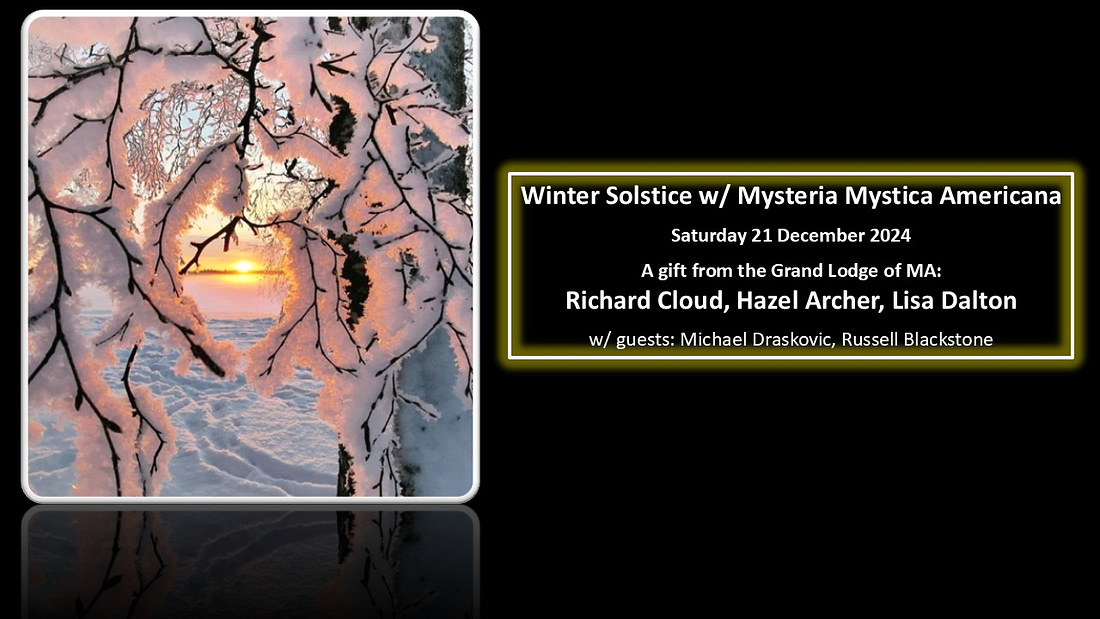 Now listen: The Darkness is coming…But never fear…The darkness is coming…But the light is near…The darkness is coming…The darkness is here… & yet dear friends, The light never goes out - it goes in - & then we give birth to it again & again. At this potent time around the Winter Solstice, the unborn waiting to reincarnate in the coming year are gathering - right now - near the ‘Rainbow Bridge’. They are still carried in the arms of their Guardian Angels who will show them a vision of their future life on Earth. Maybe one of them is looking down at you right now, perhaps they’ll pick your family tree to add a branch to…If you are calling, when the time is right, they will come… At Advent, All of our souls are pregnant with the possibility of giving birth to the light within. Wisdom fills us with this possibility - that we may beget the Being of Love. This pure Light is a Becoming, it becomes, a rainbow, in us: shining with the colors of Hope, Truth & Beauty. In growing this rainbow within, we Become, enlightened, with Good Will, bringing the power of Peace to bear in the world. Surrendering to the awakened dreaming, we celebrate the Dark Womb Time, where the inner life is honored & nurtured, & where change is possible…Consecrating the Nativity of a new Solar year… The future is a line arcing out in front of us - The past is a line extending behind - But space is curved - So somewhere the future meets the past, & the circle is joined in wholeness. The esoteric meaning of this time of year can be gleaned from the Mystery Schools. When I worked with the Societas Rosicruciana in America – on the longest night we would undergo a ceremony of death & rebirth in order to enter the inner dimensions beyond the sense-bound world, to gaze upon the “Sun at Midnight.” This ceremony out-pictures the journey of the soul into the fecund depths of the super-conscious mind - into the great dark sea of Space beyond Time, from which all creation comes forth - the warm-dark womb, where the soul can be purified, & born anew – enabling the worthy initiate to attend the convocation in the Spiritual world, which occurs every year on Winter Solstice, with the Great Ascended Masters working to manifest the Divine Blueprint into Earth-evolution. Dion Fortune describes the outer aspect of this process in her book, The Sea Priestess: May each of us journey down into the cave of our soul - to drink from the secret well of Wisdom - & to find the hidden flame within the dark - Then let us return - bearing our own unique gift of Light for the world. See you there ~hag Winter Solstice w/ Mysteria Mystica Americana MAZinniker Farm has harvested Biodynamic Pfeiffer Wheat - If you are interested in signing up to receive a share of the harvest - Supplies are limited - Contact the Family Farm Initiative Here’s the link to a compendium of Free Video PresentaionsIf you want to support the Spiritualization of the Earth thru the Biodynamic Farming done on Zinniker Farm, you are invited to become a paid subscriber, with all donations going directly to the farm The Cognitive Ritual is a Free Will Offering to All worlds. Please Share freely Greetings Friend, you currently a free subscriber to Cognitive Ritual. Thank you for receiving my workings freely offered. For the full experience, upgrade your subscription. ALL donations go to support Zinniker Farm - The oldest Biodynamic Farm in America! Together we can spiritualize the Universe. XOX ~hag |